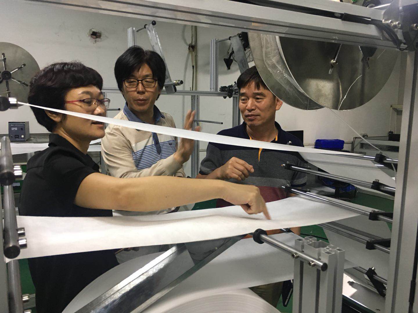 2018年5月5日星期五,S-M PARTS(HK)張總帶韓國客人金社長來我公司訂購全自動柳葉型一拖一口罩機設備產線,張總是專做韓國機械設備進出口的貿易公司,這次帶金社長來我司參觀,對我司新款全自動柳葉型一拖一口罩產線很關注,這款機型是我司近期針對韓國客戶用戶群體開發改制的,速度快,價格實惠,省人工,同行尚未出類似產品,這次新產品推出,新款配置,價格不變,深受用戶喜愛。