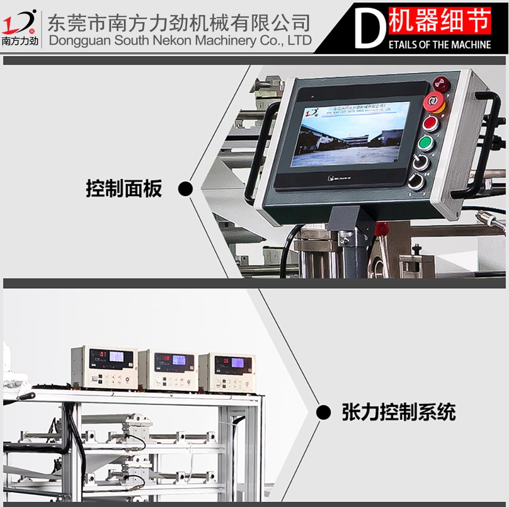 “南方力勁”品牌全自動折疊口罩一體機,是利用南方力勁設計的程序控制完成自動生產,從原材料3~6層,自動化完成作業,其中包含制作工序有自動印刷、自動上鼻梁條、折疊成型和耳帶焊接;設備通過伺服送料,定位系統與每個制作工位配合,生產出折疊口罩;為了應付市場需求,根據產品可以對模具進行調整,生產出各式各樣的折疊口罩,拓展市場占有的份額;