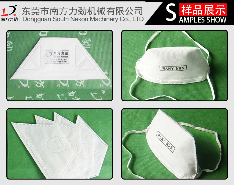 南方力勁全自動超聲波鴨嘴形口罩機(鴨嘴口罩制造機),是利用超聲波熔接的原理從而生產出適用于高污染工業用的鴨嘴形口罩的機臺。此機器口罩本體部分可使用4~10層的PP無紡布以及過濾材料(如:熔噴布、活性炭材料等),從而可以生產出達到N95,FFP2等口罩成品。且此機臺從入料到成品均為一條線自動化作業:原材料自動入料,鼻線輸送系統,且可將鼻線自動包折于無紡布內,自動折邊以及成品裁切,并可以自動附加呼吸閥孔。此鴨嘴形口罩機生產的成品,外形美觀;該機臺性能穩定,產量高,良品率高,易于操作。