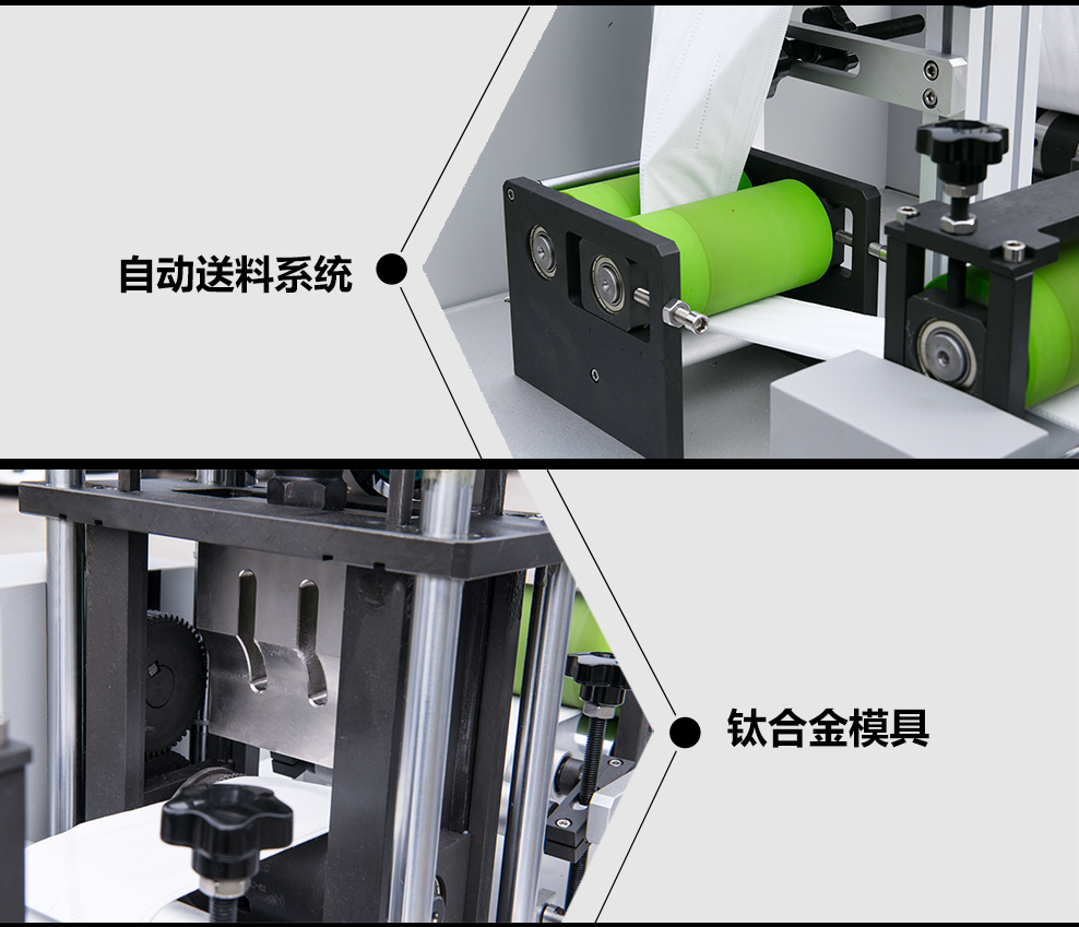 在大多數口罩機械廠家使用鋁合金的時候,南方力勁口罩機已經提供并且積極的倡導客戶使用鈦合金模具,因為相對于鋁合金的易氧化、易爆裂,不適合長時間的趕貨操作、使用壽命短等缺點,鈦合金的優點顯而易見: